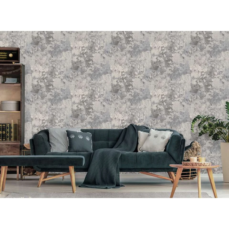 Solide uni met betonlook motief.