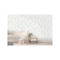 Dit is een papierbehang. Papier behang is relatief goedkoop in aanschaf en afhankelijk van de kwaliteit makkelijk aan te brengen en te verwijderen. Papierbehang is verkrijgbaar in veel kleuren en kleureffecten. Ook leent papierbehang zich uitstekend om uitgesproken dessins op af te beelden. Deze eigenschappen maken dat papier behang zich prima leent voor ruimtes die je herhaaldelijk ‘in het nieuw’ wilt steken, zoals bijvoorbeeld een baby- of kinderkamer.