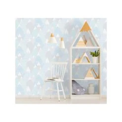 Grappig kinderkamer behang met een abstract berglandschap.